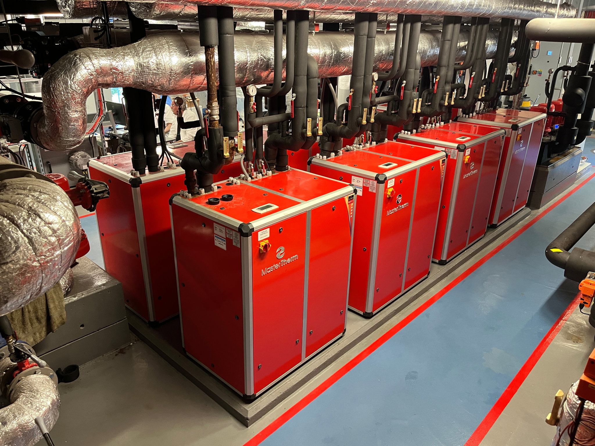 V Ústavu jaderné fyziky Akademie věd ČR v Řeži byly instalovány dvě kaskády, z nichž každá zahrnuje čtyři vodou chlazená tepelná čerpadla.