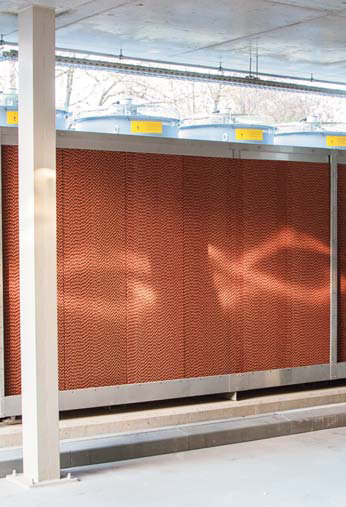 Sofistikovaný systém chlazení výrobních zařízení pro nanášení tenkovrstvých povlaků. Zpětné využití tepla pro vytápění a přípravu teplé vody. Přesná klimatizace laboratoří. Maření nevyužitelného tepla na adiabatické věži s možností volného chlazení. Projekt oceněný titulem Ekologická stavba roku.